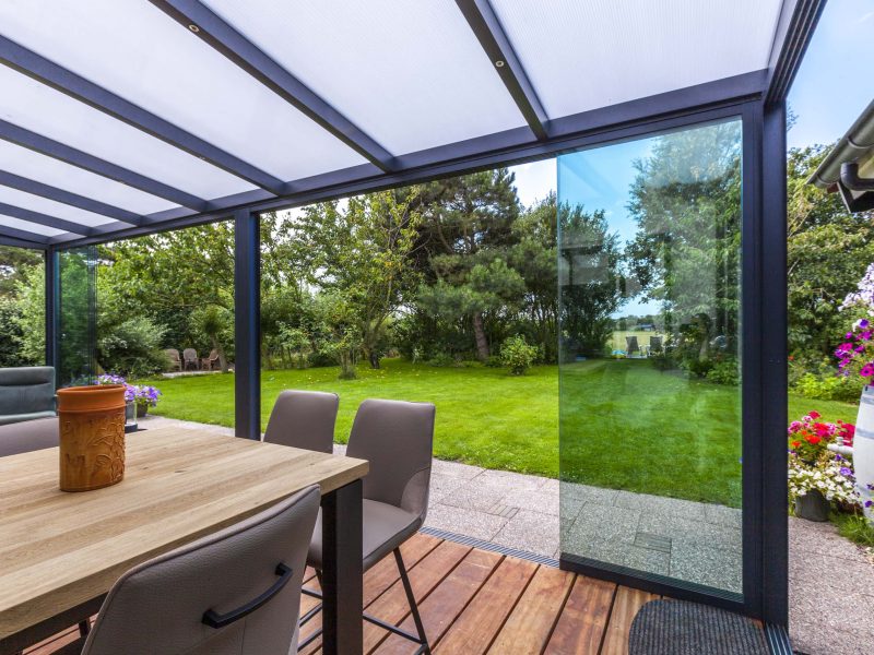 Unlock the potential of your aluminium veranda and transform it into a luxurious garden room to use all year long. These glass sliding doors provide full protection against any weather conditions while ensuring an uninterrupted flow of light and a clear view. With these doors, you can fully immerse yourself in the outdoors throughout every season, without having to make any compromises.